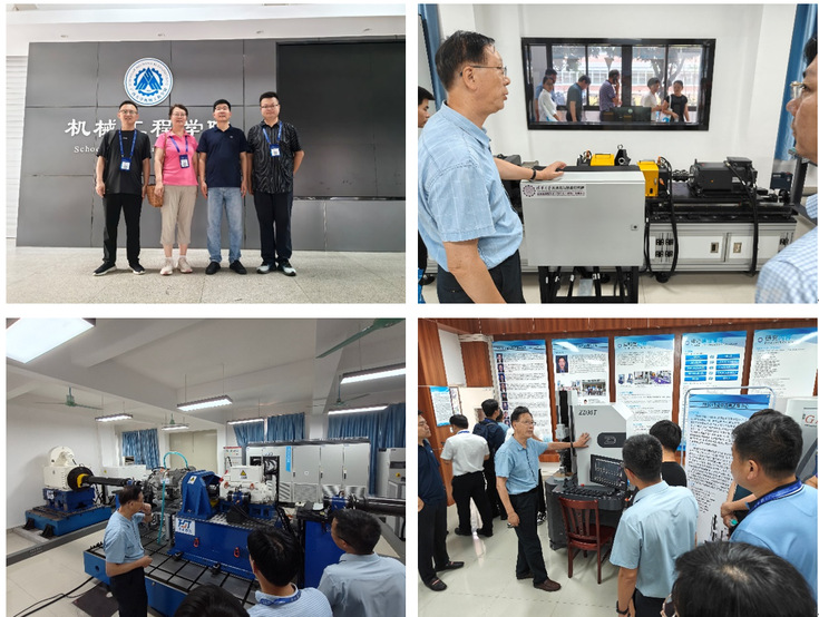 张润梅院长一行首先到访了广西大学,参观了机械工程学院新能源汽车,并与实验室负责人进行了深入的交流与探讨。随后参观了广西大学智能化工程实训中心,该中心是一个集教学、科研、实践于一体的综合性平台,为学生提供了良好的实践环境和创新空间,其中的智能化设备和先进的教学模式为未来学院实验室建设拓宽了思路,双方表示希望未来两校能在智能化工程领域开展更多的合作与交流。