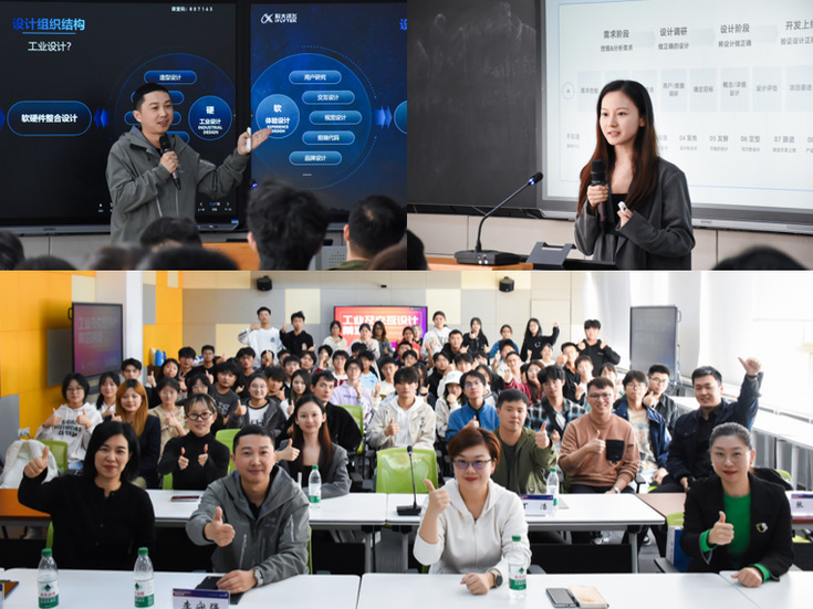 本次认知实习还邀请了科大讯飞设计团队为学生们带来一场关于人工智能技术与设计的讲座。讲座涵盖了语音识别、人机交互等前沿技术的设计应用,展示了AI技术在未来工业设计中的广阔前景。通过与设计师的互动,学生们加深了对人工智能与设计结合的认识,启发了他们在未来设计中融入前沿技术的思维。