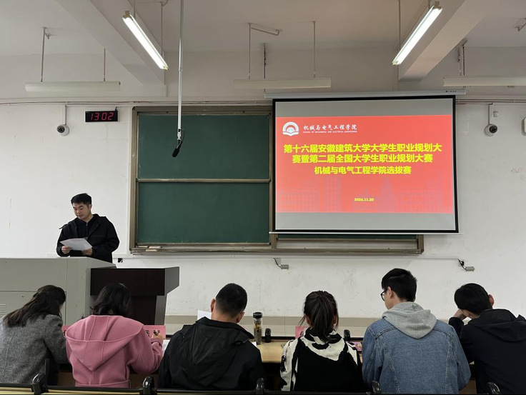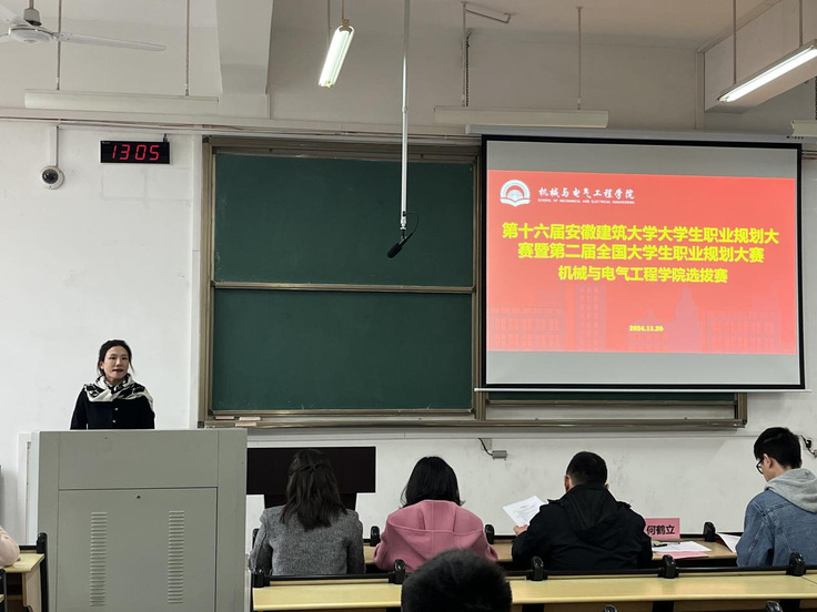 本网讯 为提高大学生职业生涯规划与就业指导工作水平,增强大学生生涯规划意识,11月20日,机电学院举办大学生职业规划大赛学院预选赛,邀请中盐安徽红四方锦邦公司吴宁老师、校就业处方健老师、袁红艳老师、校团委岳琦老师、马克思主义学院任亚若老师担任评委。