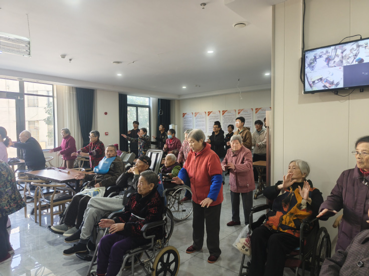 活动现场,同学们分工明确,有的同学与老人们促膝围坐,面对面地亲切交谈,认真倾听老人们在养老院中的生活状况,有的同学在同老人们一起做早操。同学们还为老人们准备了精彩的节目。大家用朴实而真诚的行动表达着对老人们的关爱,平日里清静的养老院热闹起来,院里一片欢声笑语,暖意融融。