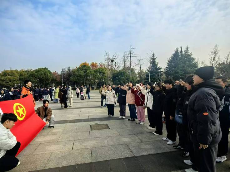 活动开始时,全体师生在渡江战役纪念馆前进行集体默哀一分钟,缅怀南京大屠杀遇难同胞和渡江战役中牺牲的革命先烈。随后,团员们整齐列队,面对团旗,高举右手,再次庄严宣誓入团誓词。
