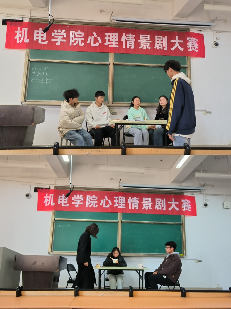 为深入开展心理健康教育,丰富校园文化生活,11月27日,学院成功举办心理情景剧大赛。参赛作品围绕情绪管理、人际关系、自我认知等主题展开,同学们用生动的表演、真挚的情感,将大学生活的点滴烦恼与成长阵痛,化作一幕幕触动人心的场景。经过激烈角逐,最终评选出一等奖1个,二等奖2个,三等奖4个。本次心理情景剧大赛不仅加强了同学们之间的交流,更传递倡导着积极健康向上的生活方式,创新和丰富了心理健康教育内涵,展现了新时代机电学子的青春风貌。