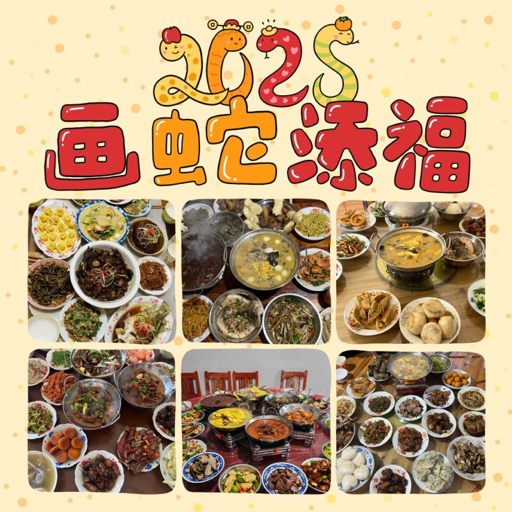 镜头锁佳肴,味蕾忆家国。年夜饭,是春节里最温暖的仪式。在“蛇影新春”年夜饭美食摄影活动中,同学们用镜头捕捉下了年夜饭的精彩瞬间。一盘盘色香味俱佳的美食,一张张洋溢着幸福的笑脸,都成为了镜头中的主角。这些照片不仅记录了家庭团聚的温馨时刻,更展现了春节这一传统节日所蕴含的深厚文化内涵和浓浓的亲情。