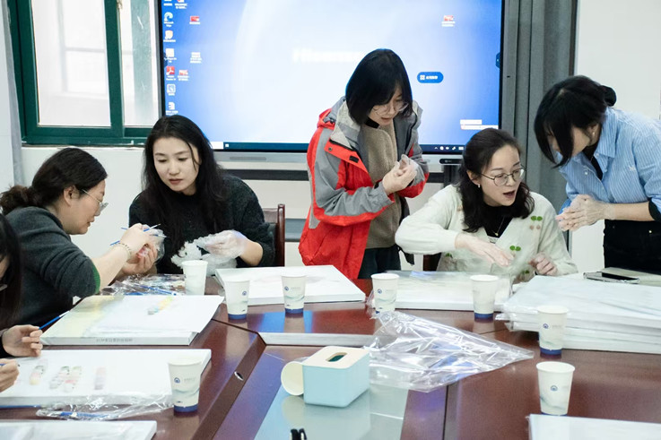 手部保养护理在工业设计系高娴和杨薇薇两位老师的悉心指导下进行;她们运用专业知识与娴熟技巧,为女教师们提供全方位手部护理保养,从清洁、去角质的基础步骤,到按摩促进血液循环的舒缓环节,再到敷上滋养手膜的深度呵护,每一个步骤都尽显专业与用心。细致入微的护理让女教师们的双手焕发出更多的活力与光彩。