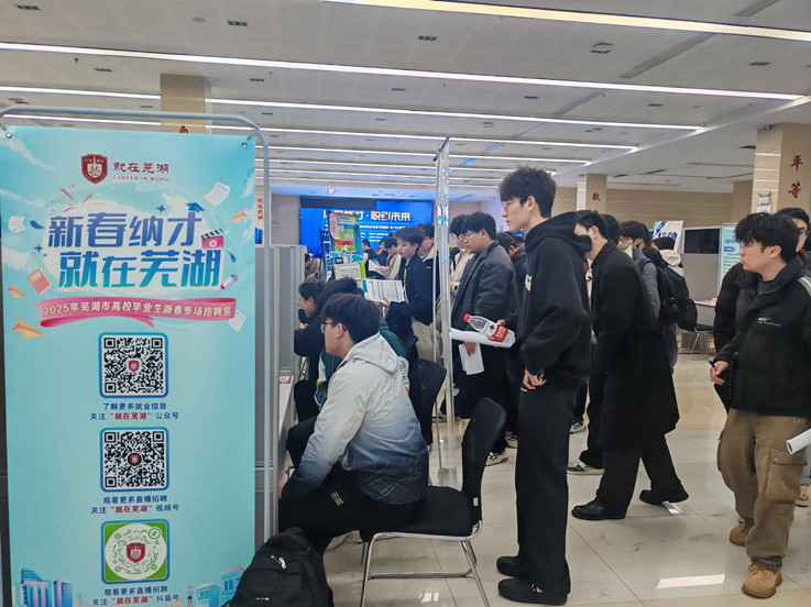 芜湖市鸠江区、湾沚区、经开区、弋江区公共就业和人才服务中心面向必赢76net线路官网举办四场专场招聘会。博耐尔汽车电气、三只松鼠、海程新材料、长信科技等75家芜湖市高新技术企业齐聚招聘会现场,为学院毕业生带来400余个就业岗位,招聘需求涉及自动化、机械电子、智能装备制造、能源器件等相关专业;提供了丰富多样的就业岗位,满足不同专业学生的需求。招聘会现场学生们手持精心准备的简历,详细了解企业招聘要求、岗位发展前景等信息,多名学生与企业现场达成就业意向。