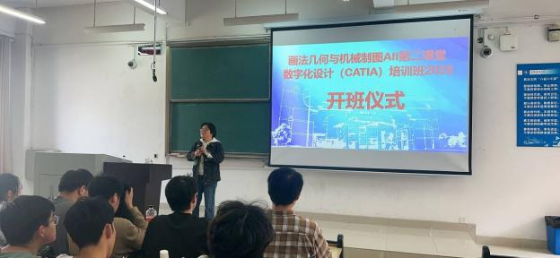本网讯  3月26日下午,机电学院第三期“数字化设计培训班”开班仪式在逸夫楼5203举行。工程图学教研室全体教师、24机械专业辅导员、第三期培训班学员及在2024年大学生先进成图技术与产品信息建模创新大赛取得优异成绩的前两期学员参加了开班仪式。