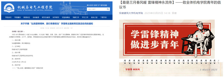 本网讯 为深入学习习近平总书记关于弘扬雷锋精神的重要论述,鼓励广大青年学子投身志愿服务事业,机电学院自发布《最是三月春风暖雷锋精神永流传——致全体机电学院青年的倡议书》以来,以“弘扬雷锋精神,践行青春担当”为主题,围绕六大模块开展各类学雷锋主题教育实践活动40余场。学院全体在校生积极响应,主动参与,以实际行动践行雷锋精神。