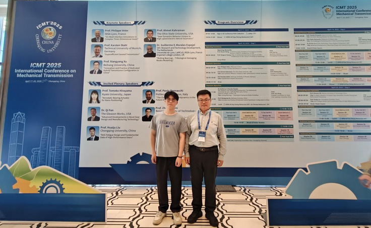 本网讯 2025年机械传动国际会议(International Conference on Mechanical Transmission,ICMT 2025)于4月17至4月20日在中国重庆举行。此次会议由中国高端装备机械传动全国重点实验室、重庆大学和中国机械工程学会组织。作为机械传动领域最具影响力的国际学术会议之一,会议吸引了来自中国、美国、德国、英国、日本等全球14个国家和地区的500余名专家学者和企业代表,共同探讨机械传动领域的最新发展趋势与创新成果。必赢76net线路官网工程机械智能制造重点实验室袁彬博士、高婷博士、徐子翔硕士生参加了本次会议。