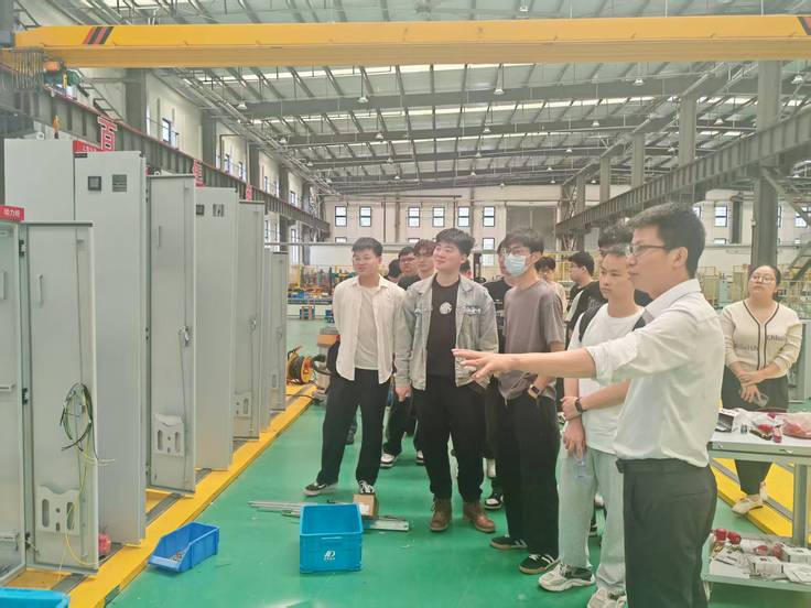 在实地走访环节,毕业班同学实地观摩了企业数字化展厅及智能生产线。技术负责人现场演示了企业自主研发的LDN一体化智能控制柜操作系统。在智能制造车间,师生们零距离接触智能控制系统等核心产品,直观了解高端装备制造工艺流程。