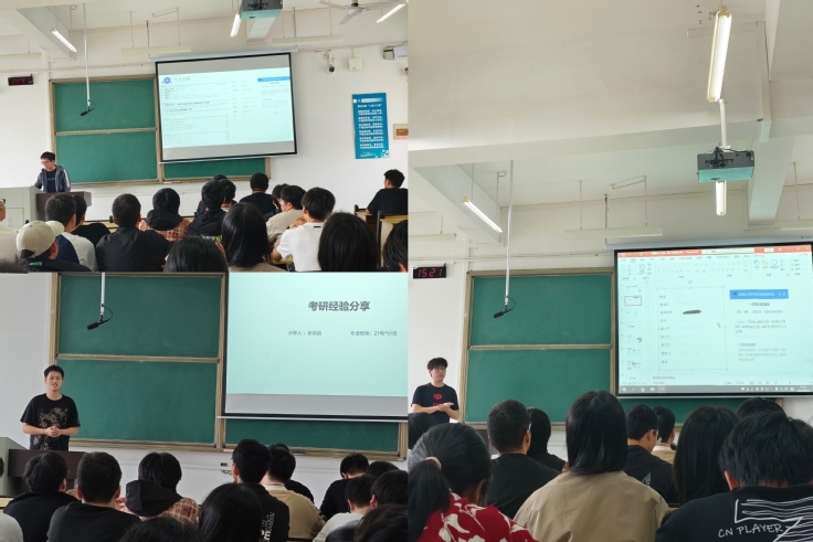 会上,三位党员同志以亲身经历详细拆解考研全流程。围绕报考院校及专业选择、参考书的选择、考研时间规划与心态等方面进行分享,为在场的同学们提供了实用指导和建议。无论是高数的解题技巧、英语的作文模板、还是专业课的知识点串联都干货满满。在互动答疑环节,针对同学们提出的择校难题,三名党员从院校排名、专业优势、报录比等因素给出理性且贴合实际的分析。