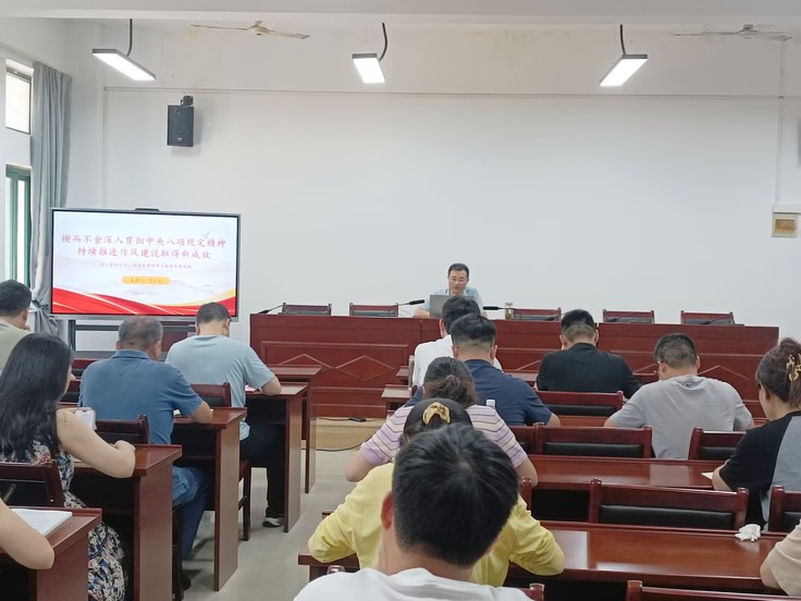 本网讯 7月7日,机电学院党委书记叶少宝讲授深入贯彻中央八项规定精神学习教育专题党课,学院领导班子成员、党委委员、组织员、党支部委员参加会议。
