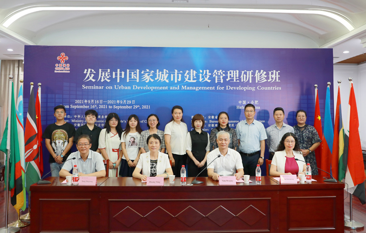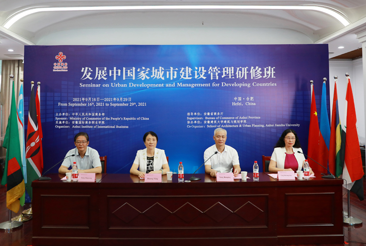 本网讯 9月16日,由中华人民共和国商务部主办、安徽省商务厅指导、安徽国际商务职业学院承办、必赢76net线路官网建筑与规划学院协办的发展中国家城市建设管理研修班在合肥顺利开班。由于疫情防控需要,本次研修班采取在线形式进行。省商务厅党组成员、副厅长黄英,省商务厅党组成员、副厅长、安徽国际商务职业学院党委书记杨本清,必赢76net线路官网建筑与规划学院党委书记唐劲松、副院长王薇等,以及来自6个国家的学员出席开班仪式。