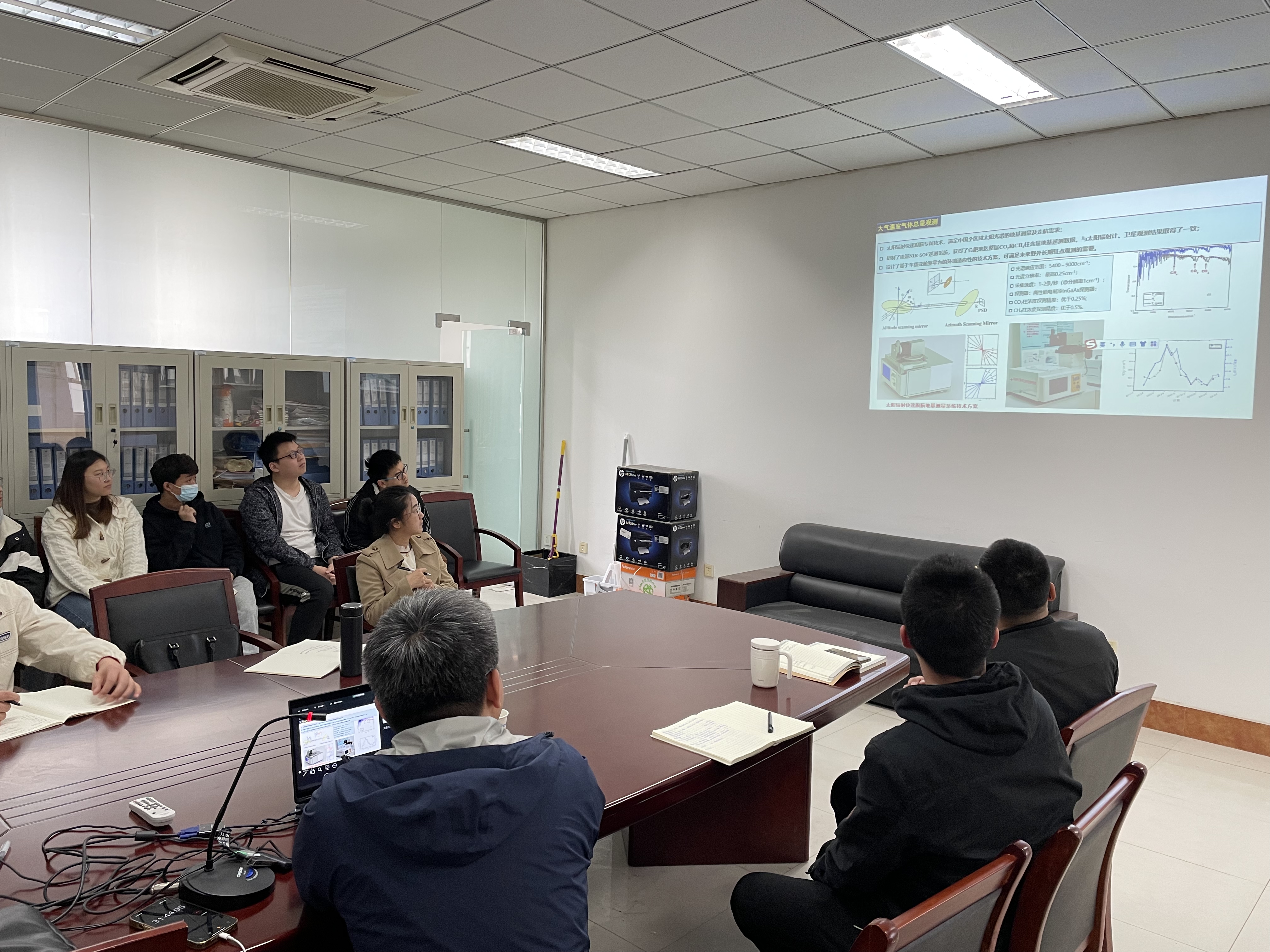 徐亮研究员从开放光路的傅里叶变换红外光谱在线分析、气体泄漏的傅里叶变换红外光谱遥测、发电厂排放温室气体监测、大气温室气体的总量监测以及原料成分的近红外光谱分析等多个不同的场景描述了红外光谱的研究进展,生动精彩的分析讲解引起了师生的热烈讨论,新颖和独特的研究视角给大家带来了许多有益的启发。傅里叶变换红外光谱分析技术在环境中的诸多应用,日益成为环境样品分析和温室气体总量评估的重要技术手段,与会师生都表示受益匪浅。