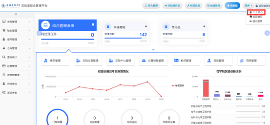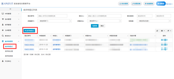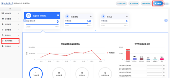 1.登录实验室综合管理平台,在危化品栏目中选择废弃物管理。