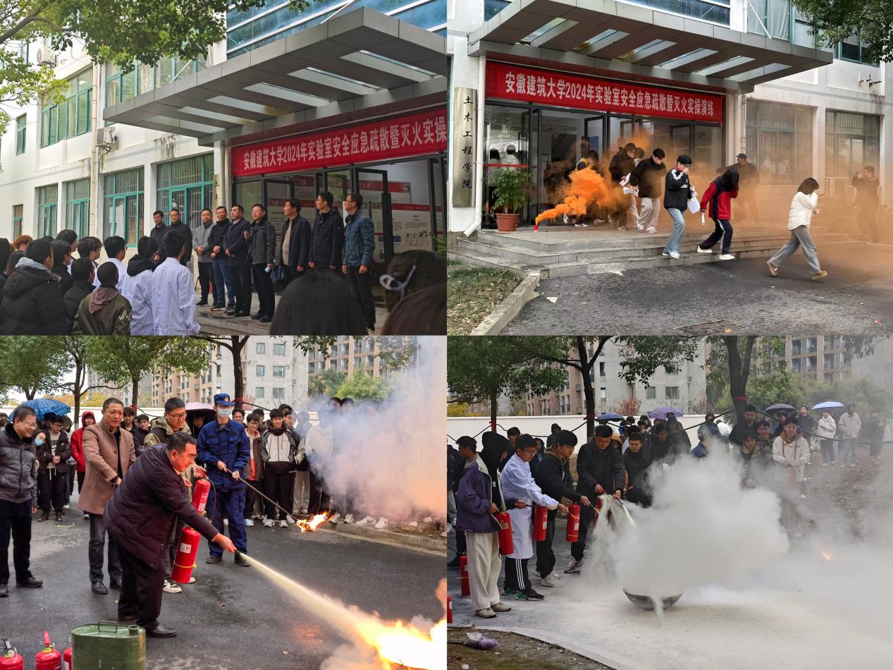 本网讯 为了进一步加强学校安全管理,提高师生消防安全意识和自救自护能力,2024年12月4日学校在徽匠楼开展实验室安全应急疏散及灭火实操演练。校党委常委、副校长蔡国军亲临现场指导,实验室与设备管理处、保卫处、国际交流合作处、后勤管理处相关工作人员,土木学院师生以及外国留学生共200余人参与演练。