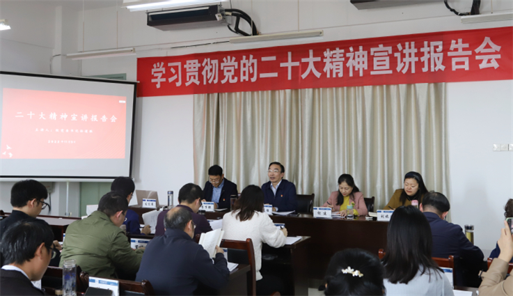11月9日,校党委书记孙道胜深入马克思主义学院,向全体思政课教师宣讲党的二十大精神,并交流研讨党的二十大精神“三进”工作。孙道胜分别从党的二十大的重大意义、党的二十大的主题、过去五年工作和新时代十年伟大变革的重大意义、习近平新时代中国特色社会主义思想的世界观和方法论、以中国式现代化全面推进中华民族伟大复兴的使命任务、未来五年党和国家各项事业发展的战略部署、全面建设社会主义现代化国家的人才支撑、以党的伟大自我革命引领伟大社会革命等八个方面,进行了全面深入的宣讲。宣璐、张亮、周叶君、罗贤龙四位教研室主任分别结合不同课程内容,交流了党的二十大精神融入思想政治理论课的具体设想和融入思路。会上,马克思主义学院教师围绕党的二十大的重大意义、主要精神、核心要义和丰富内涵,结合校院和师生实际,分别从新时代的历史方位、中国式现代化与西方现代化的本质差异、社会主义核心价值观的传播、二十大报告金句如何融入思政课教学等方面谈了自己的心得体会。