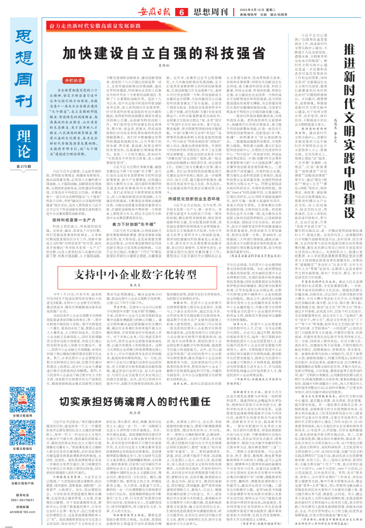 一是积极参政议政。民建支部3名成员加入民建省委专门委员会,承担省政协重点调研课题并提交提案,支部主委朱庆生在《安徽日报》理论版发表《加快推进民营中小企业数字化转型》,作为民建经济研究院专家参加2023中国民营经济发展论坛。无党派人士赵强在省政协“促进新型工业化城镇化加快突破推动皖北全面振兴”大会作口头发言,相关意见建议已被省政协报送省委、省政府《建议》采纳。九三学社社员杨英荣获全省党外知识分子“双树双建”主题教育年度标兵称号。二是着力服务发展。党外知识分子张乐牵头设计“合肥市延乔路红色街区改造公共艺术设计项目”和“金寨县红二十八军三年游击战革命纪念园”等红色文化项目。无党派人士徐文总2023年入选“年度全球前2%顶尖科学家榜单”,与安徽佳通乘用子午线轮胎有限公司合作开展载重轮胎关键技术科技研发。无党派人士赵强与安徽省东超科技有限公司合作开展科技攻关,组建安徽省新一代光学成像技术工程研究中心。九三学社基层委员会赴东至县开展乡村振兴调研,为推动当地乡村振兴赋能。