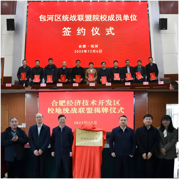 一是构建工作格局。调整充实统一战线工作领导小组,坚持和完善党委统一领导、统战部协调、有关方面各负其责的大统战工作格局。召开统战工作联席会议,制定印发学校《2023年统一战线工作要点》,将统战工作纳入年度综合考核指标体系,形成“清单+闭环”管理机制。二是创新工作机制。加强高校与地方合作,分别加入合肥市包河区和经济技术开发区校地统战联盟,构建“资源共享、难题共解、发展共谋”大统战工作格局。赴安农大、合工大开展调研,形成《推动新时代高校党外知识分子工作提质增效调研报告》。
