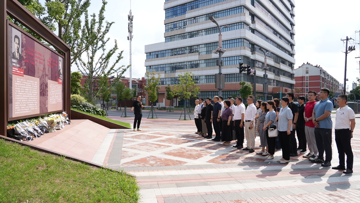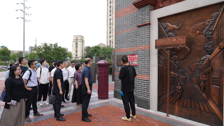 在延乔路纪念碑前,延乔路街区红色文化与景观改造提升项目主创人员、安徽省文旅创新发展研究院常务副院长、艺术学院张乐副教授介绍了延乔路街区的改造主题和设计理念,通过一幅幅浮雕、一面面壁画为大家讲述了陈延年、陈乔年两兄弟的英勇革命事迹。“延乔路短,集贤路长,他们没有汇合,却都通往了繁华大道”的醒目标语让大家深受震撼。