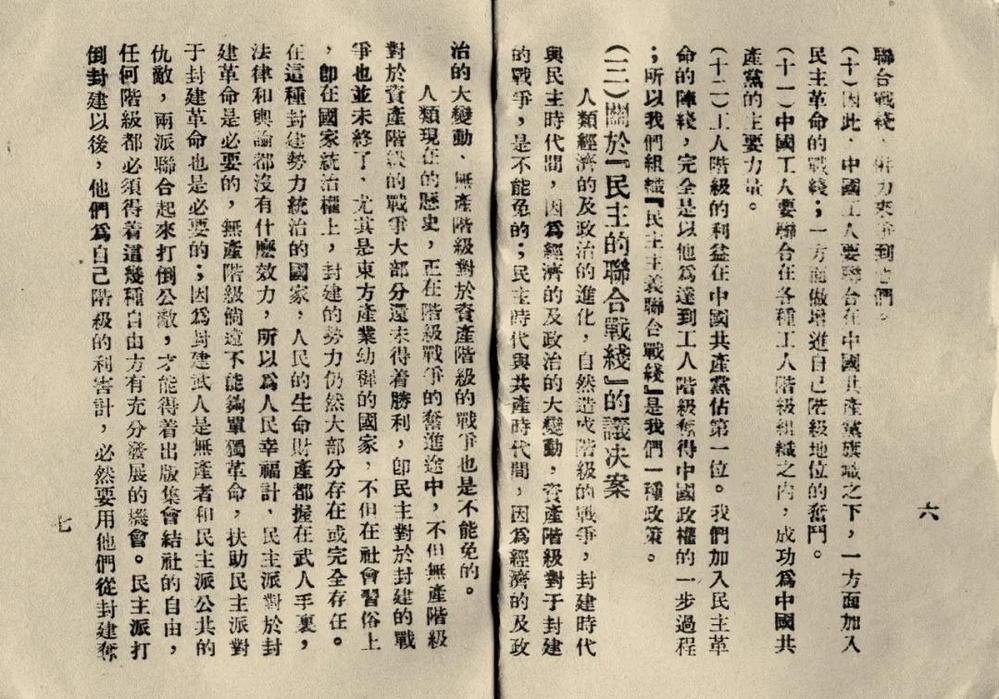 议决案提出:“在全国各城市,集合工会、农民团体、商人团体、职教员联合会、学生会、妇女参政同盟团体、律师公会、新闻记者团体等,组织‘民主主义大同盟’。”“应该出来联合全国革新党派,组织民主的联合战线,以扫清封建军阀推翻帝国主义的压迫,建设真正民主政治的独立国家为职志。”