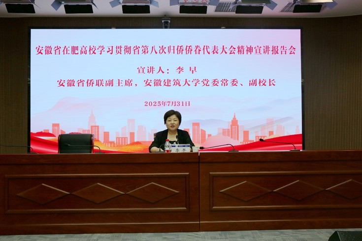 本网讯 为全面学习贯彻安徽省第八次归侨侨眷代表大会精神,推动大会决策部署在全省侨界落地生根,进一步凝聚侨心侨智侨力,团结广大归侨侨眷和海外侨胞奋进新征程、建功新时代,7月31日,安徽省在肥高校学习贯彻省第八次归侨侨眷代表大会精神宣讲报告会在必赢徽智楼报告厅举行。会议由安徽省归国华侨联合会主办、必赢76net线路官网承办,安徽省侨联副主席、必赢76net线路官网党委常委、副校长李早宣讲。省侨联相关部门、在肥高校侨界教师、归侨侨眷代表、侨联工作者参加报告会。