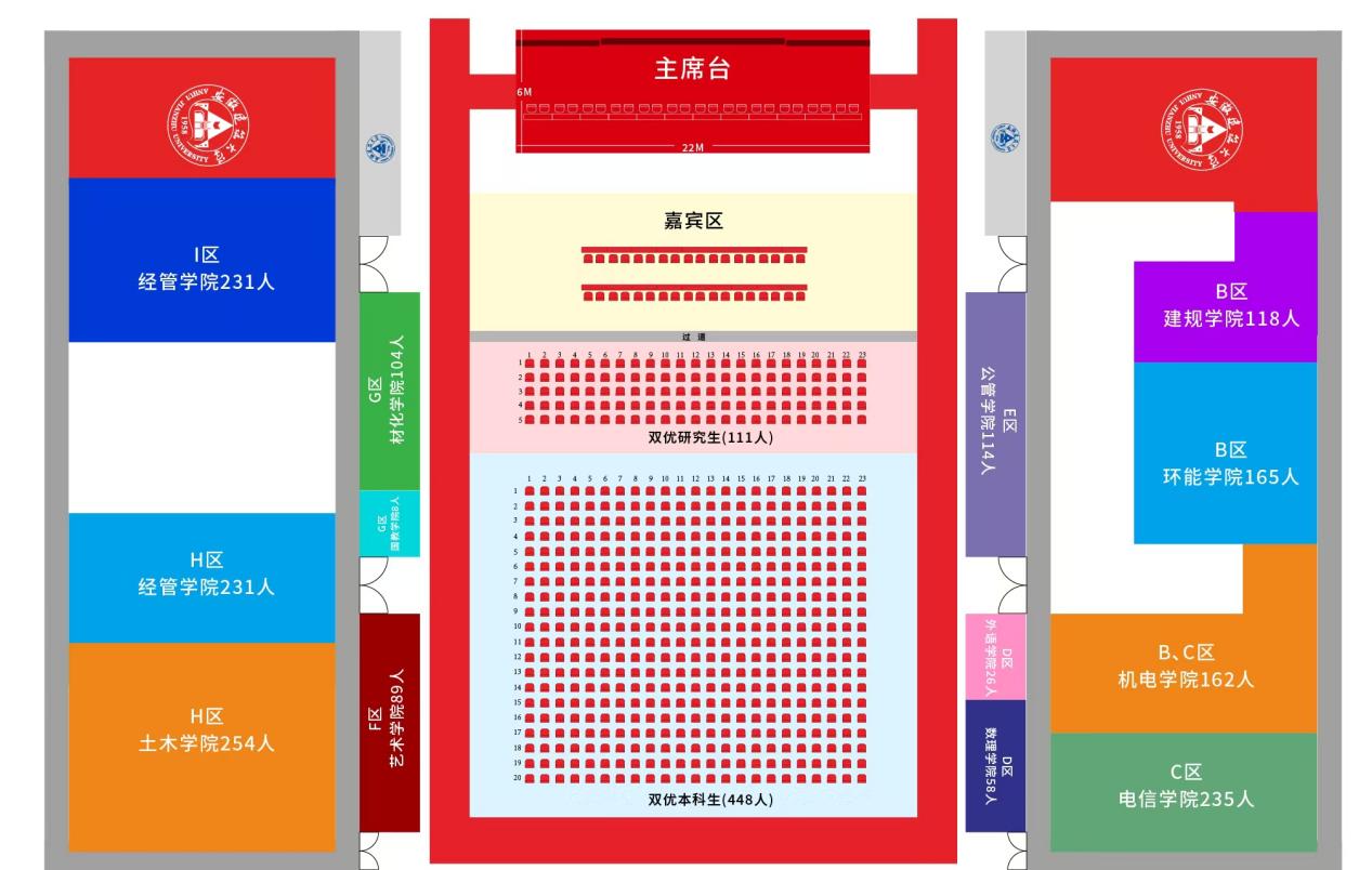 2.就座于观礼区的毕业生应由学院统一组织于14:00前入场完毕,按照座位图就座。