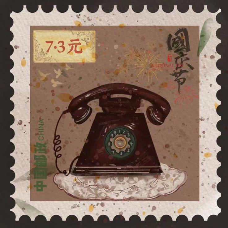 21环境设计一班的徐昌琴在保留电话基本样式基础上,突出了主体造型中蕴含的时代感元素,加上烟花与和平鸽作为画面空白之处的点缀,在老时光与新时代的交错中描绘了对祖国未来发展的期望。