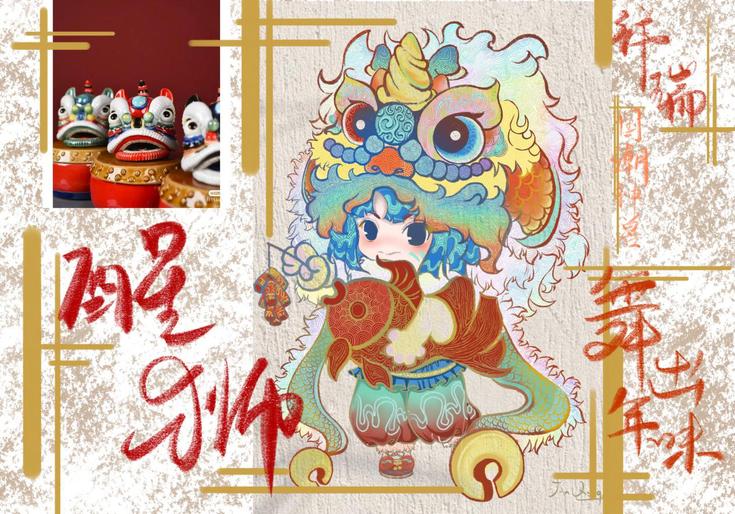 广东醒狮是融武术、舞蹈、音乐等为一体的汉族民俗文化,2006年入选首批国家级非物质文化遗产名录。20级环境设计专业的靳晴将醒狮活动拟人化,将这一传统文化活动的魅力活灵活现地在画卷上展现了出来,寄托着广大人民群众消灾除害、求吉纳福的美好意愿,表现了中华民族打不倒、压不垮的顽强精神。