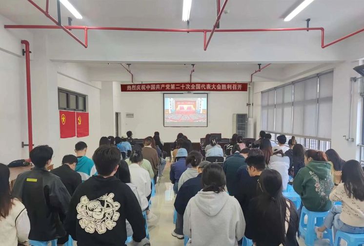 本网讯 10月16日上午,举世瞩目的中国共产党第二十次全国代表大会在人民大会堂开幕,艺术学院组织学生集体观看。