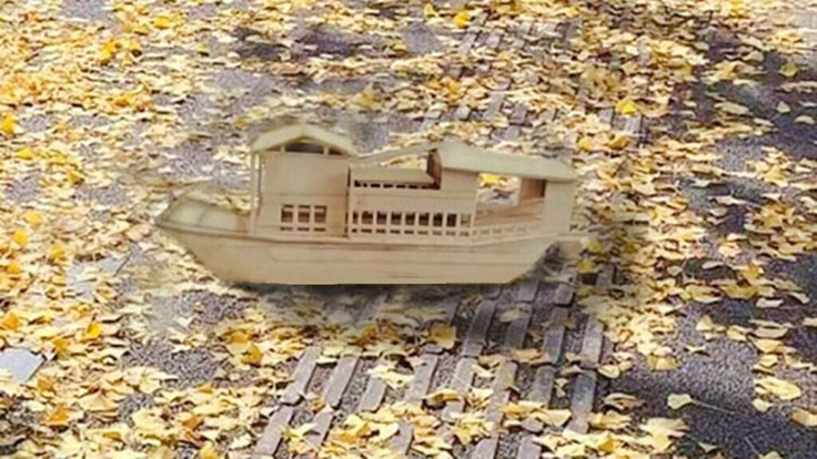 21级环境设计中外专业陈胜男以嘉兴南湖上的游船为原型,手工制作了木质模型,以庆祝中国共产党成立的辉煌奋斗史,同时在查询资料的过程中更加深入学习感悟中共一大对近代中国革命发展的重大意义。