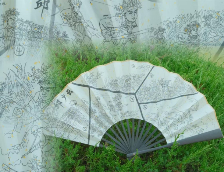 22级视觉传达设计专业周昱彤以扇绘形式,描绘了邱少云烈士身殒熊熊烈火,意志千古不灭的光辉形象,伟大的共产主义英雄气概和坚韧不屈的革命精神将被永远铭记在心。