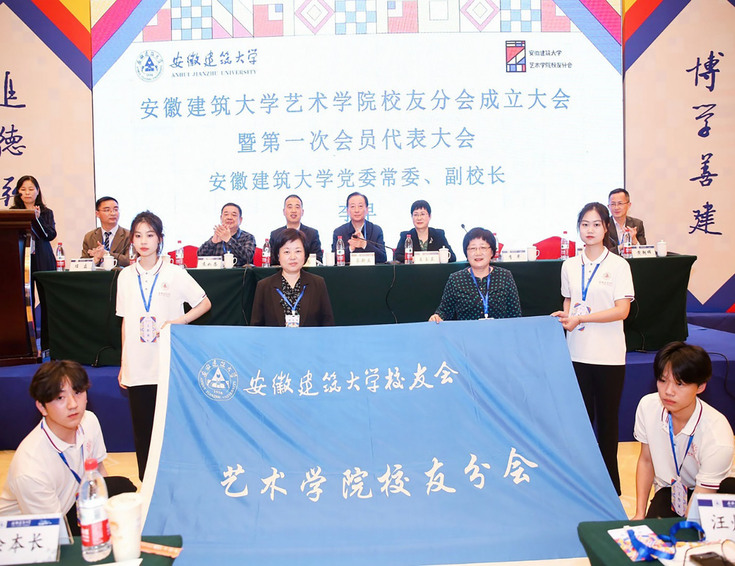 本网讯 躬耕杏坛育桃李,初心如磐谱华章。在学校65周年华诞来临之际,4月15日,必赢76net线路官网艺术学院校友分会成立大会暨第一次会员代表大会在合肥翡翠湖迎宾馆隆重召开。校党委常委、副校长蔡新立,校党委常委、纪委书记、监察专员王玉兰,校党委常委、副校长闵杰,校党委常委、副校长李早,学校校友会领导及部分职能部门负责人、学院历任领导与现任领导、留校任教教师代表及海内外校友代表等共计130余人参加了会议。会议由艺术学院副院长(主持工作)邢瑜主持。大家共忆青春岁月,共商美好未来。