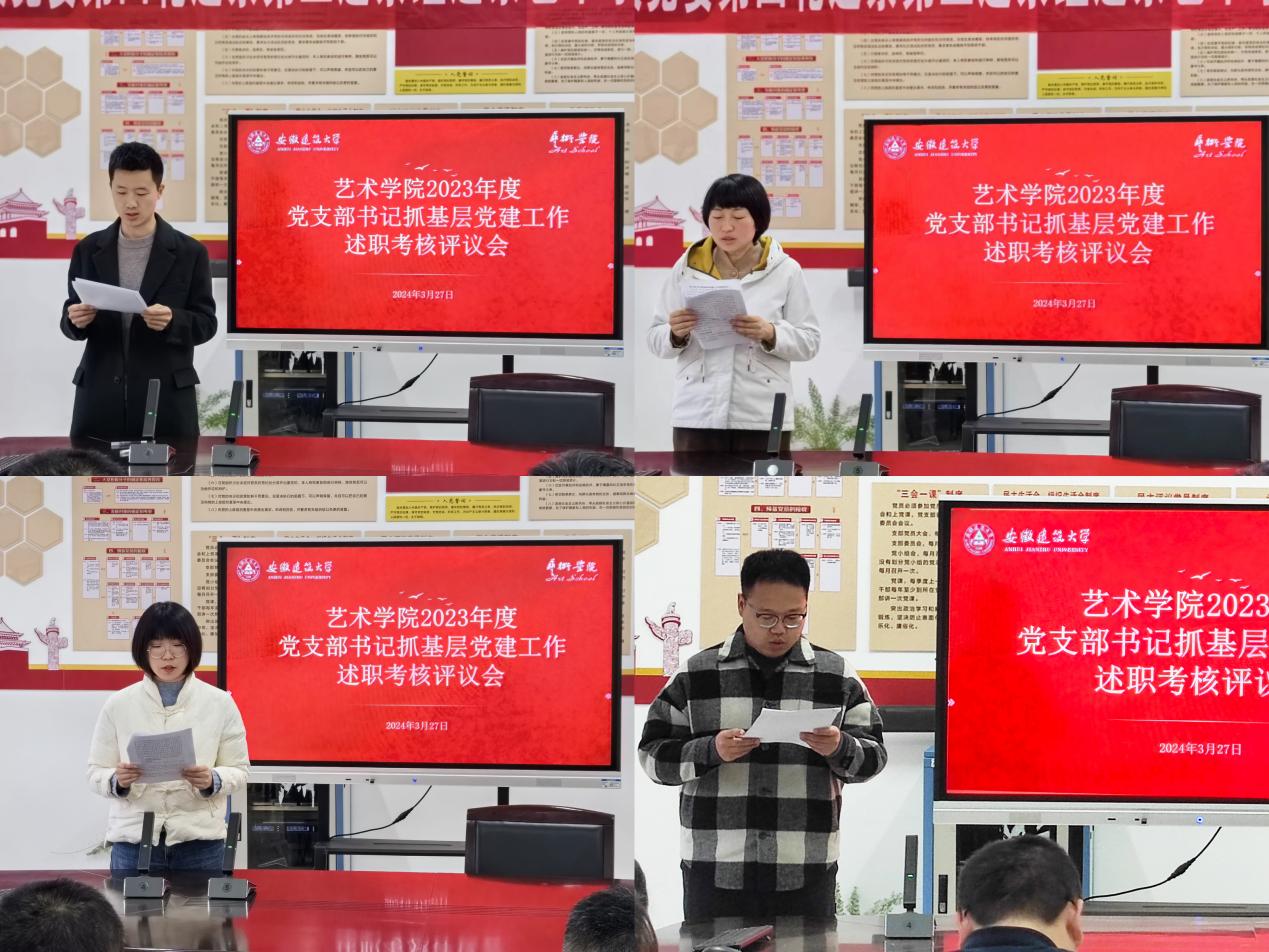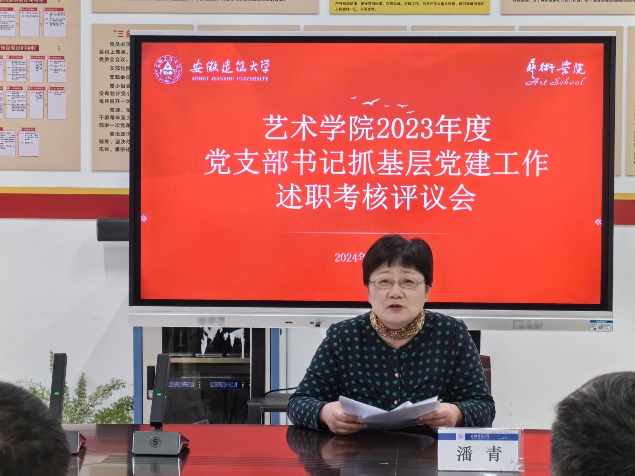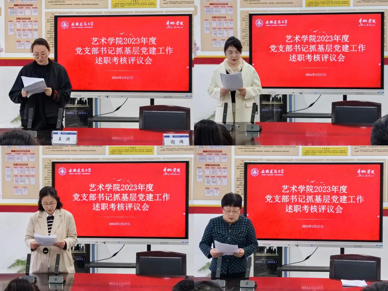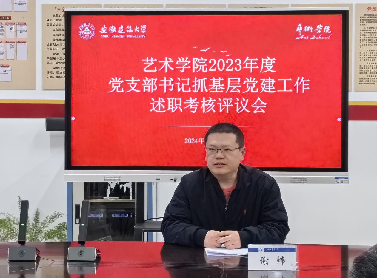 本网讯 为坚持和加强党的全面领导,促进基层党建工作水平提升,3月27日下午,艺术学院党委召开2023年度党支部书记抓基层党建工作述职考核评议会。校办公室副主任谢炜、纪委办综合管理室主任王渊列席会议,学院党委委员、党支部书记、党员师生代表参加会议,会议由学院党委副书记(主持工作)潘青主持。