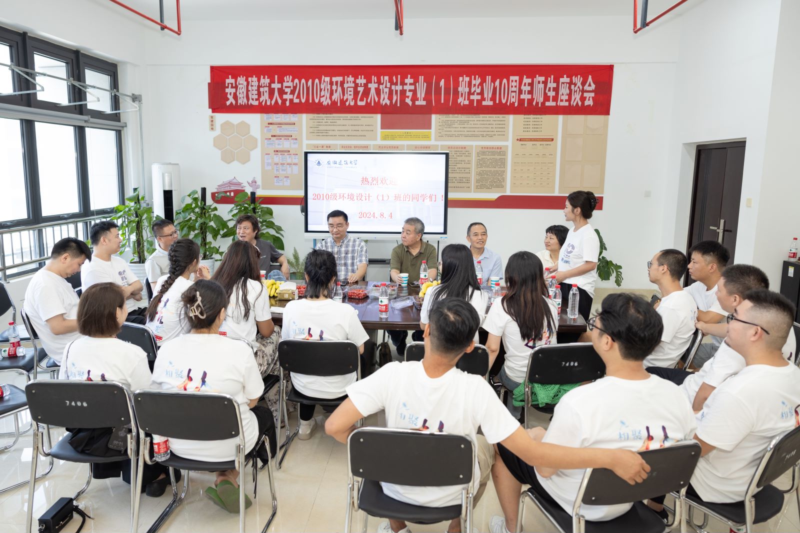 下午,徽韵楼艺术学院会议室内,举行了一场温馨而庄重的师生座谈会。艺术学院原院长汪炳璋、学院原党委副书记龚乃胜、校友工作处副处长曹佰来、学院党委副书记任磊、副教授刘雪丹以及2010级辅导员杨海燕出席会议,26名校友参加座谈。会上,任磊代表艺术学院对校友们的返校表示欢迎,并详细介绍了近年来学院在教学、科研及人才培育等方面取得的显著成就,希望校友们能够继续加强与学校、学院的联系,期待校友们常回母校走访、交流。随后,校友们分享了毕业后各自奋斗历程。他们讲述了职场上的拼搏故事、生活中的温馨点滴以及在人生道路上的感悟,表达了对母校、学院的美好祝愿。老师们分享了同学们当年在校时一份份美好的回忆,纯真的师生情谊让人感动。师长们嘱咐校友,大家经过十年打拼已经积累了一定的经验和资源,要善于抓住机遇,勇于创新,不断开拓自己的事业。校友之间要多多沟通,信息共享,互相扶持,无论同学们身在何处,母校永远以校友为荣,期望校友常回家看看,为下一个十年相聚汇聚力量。