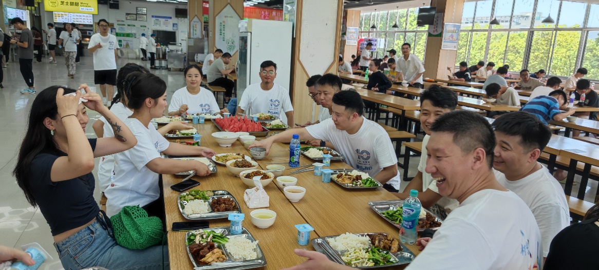 中午,校友们满怀期待来到紫云路校区餐厅,刷卡打饭围坐一起,每一口饭菜都蕴含着往昔的温馨与欢笑,仿佛回到了当年畅谈梦想、分享心事的青春岁月,欢声笑语不绝于耳。