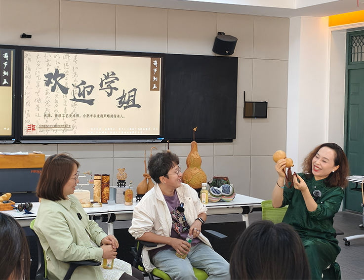 本网讯 10月9日,艺术学院非遗文创美育工作室邀请了合肥市葫芦刻画非遗传承人姚瑶来到校园,与艺术学院师生共同开展了一场别开生面的文化交流活动,进一步推动非遗与校园教育的紧密结合。