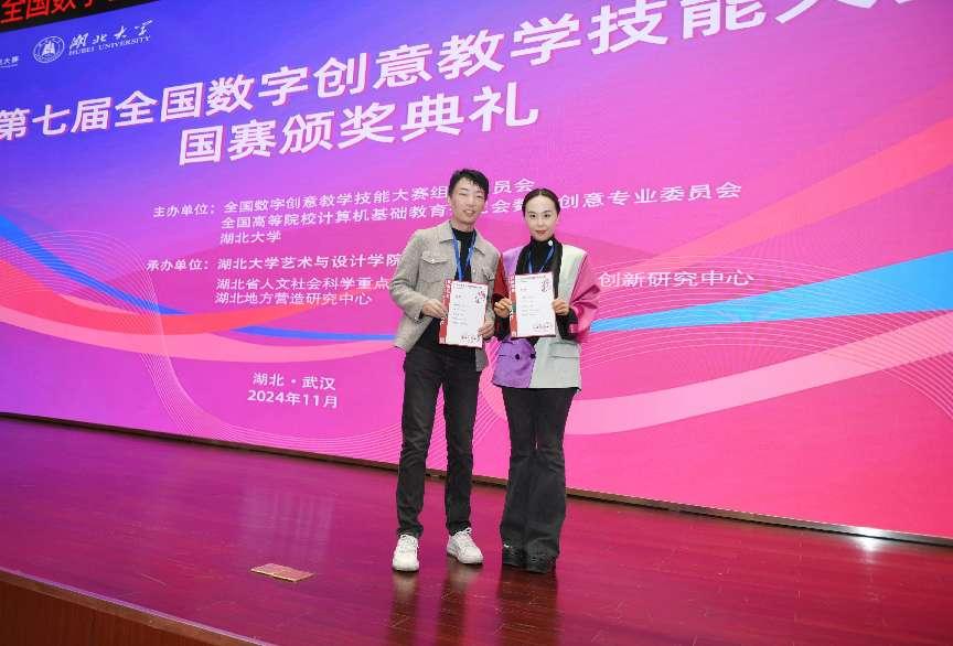本网讯 近日,全国高等院校计算机基础教育研究会数字创意专业创新研讨会暨第七届全国数字创意教学技能大赛颁奖仪式在湖北大学成功举办。艺术学院教师褚力和刘琳琳均荣获国赛二等奖,以优秀的教学技能和创新理念为学校赢得了荣誉。