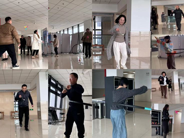 艺术学院分工会组织的本次趣味运动会设置了兼具趣味性和娱乐性的活动项目,如踢毽子、舀乒乓球、转呼啦圈等,学院教师们踊跃报名,积极参加。运动会现场气氛活泼有序,教职工们欢声笑语连成一片。此次运动会不仅让大家在紧张的工作之余放松身心,还增进了彼此之间的友谊。