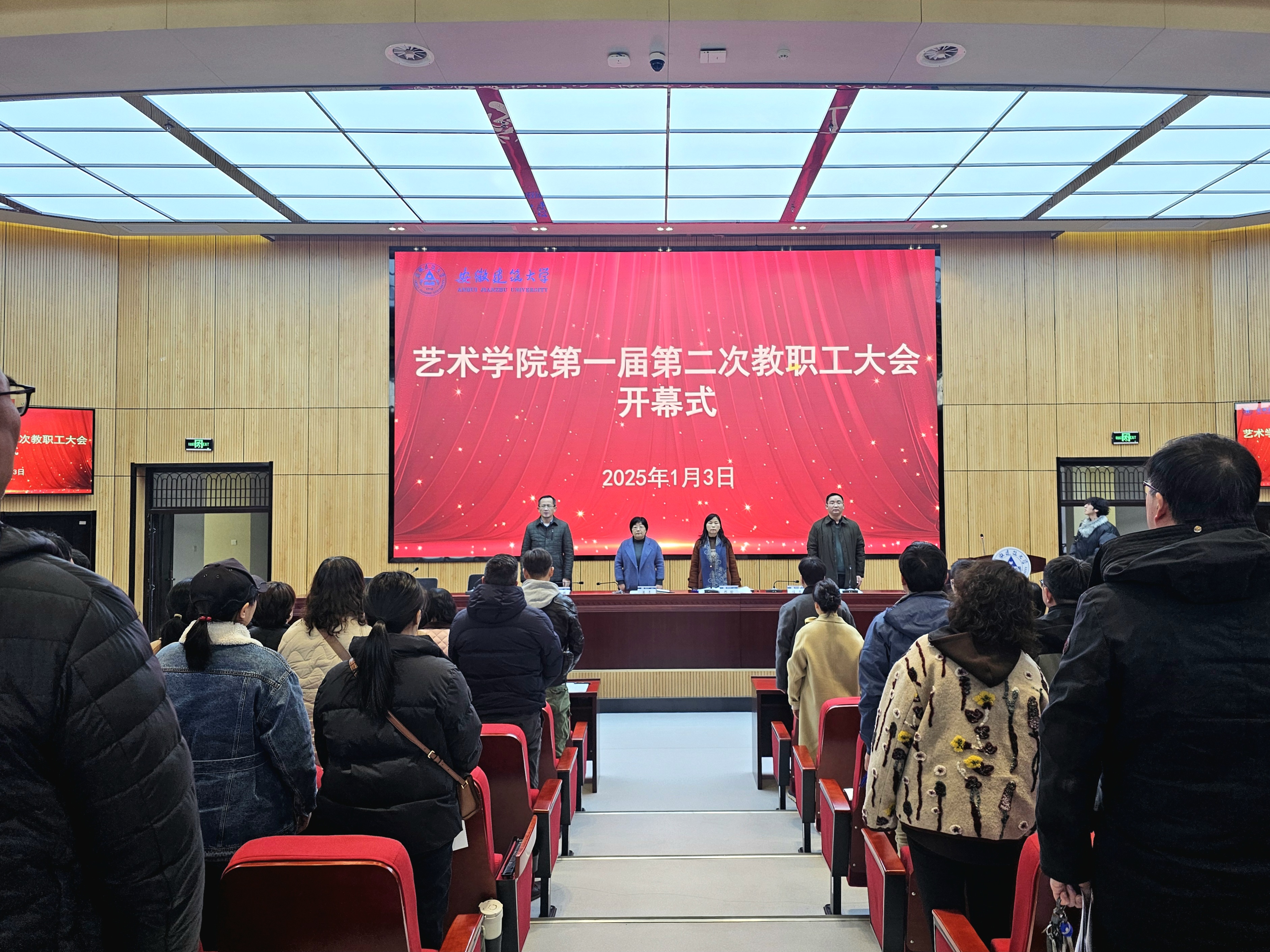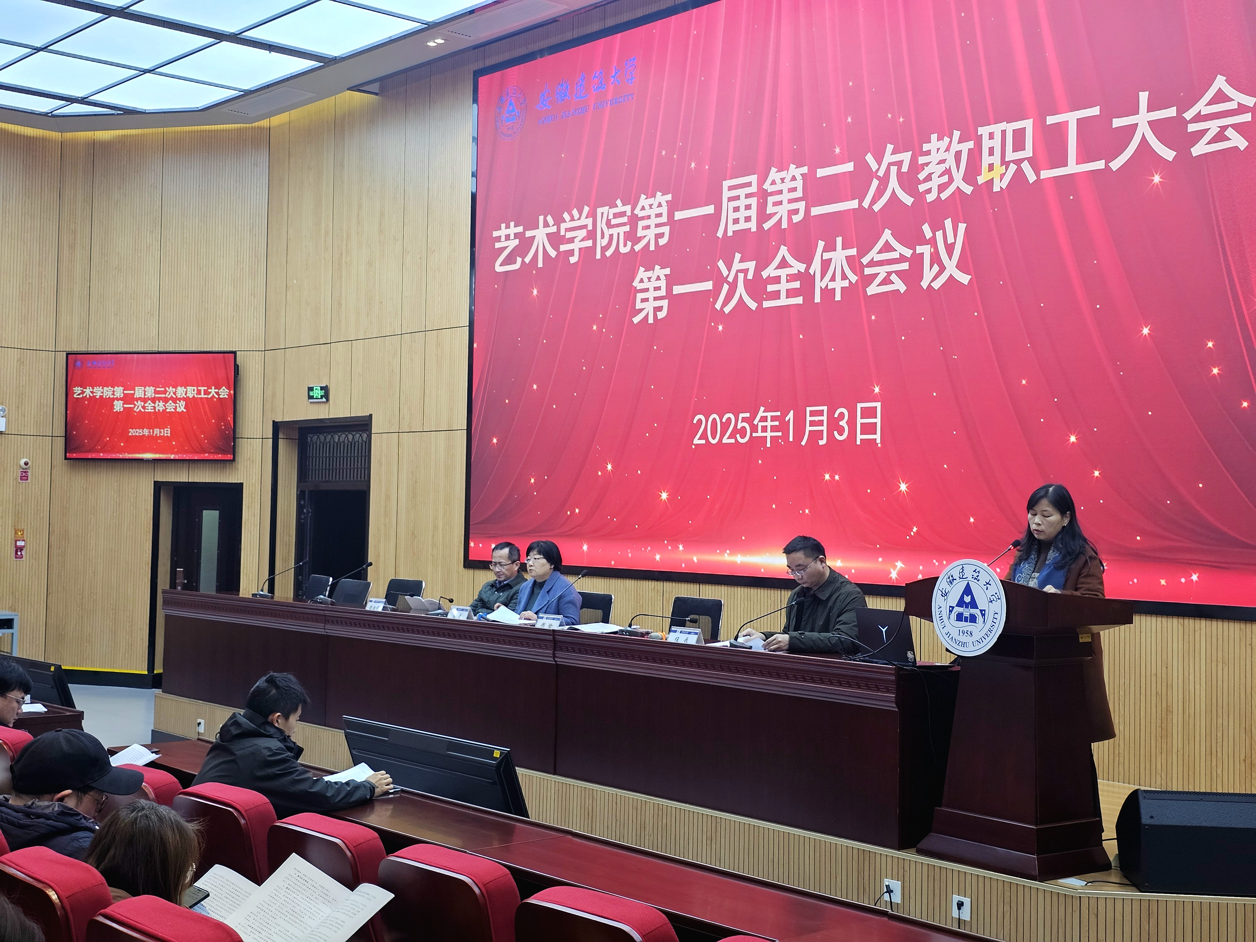 本网讯 1月3日下午,艺术学院在徽韵楼二楼报告厅召开一届二次教职工大会,艺术学院全体教职工参加会议,共话学院发展蓝图。