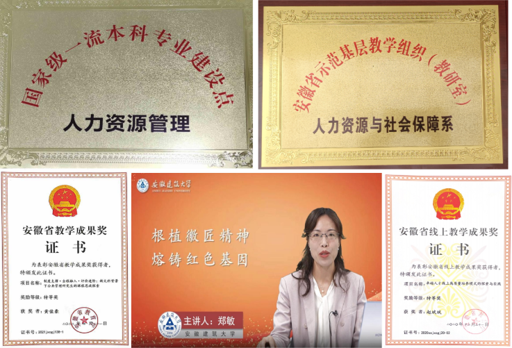人社系教师党支部认真落实“双带头人”培育工程,协同专业系持续完善管理运行机制,聚力推进教师党员素质提升和能力建设,采取青年教师导师制、项目团队工作制、课程组集中磨课、专业师资研讨会等多种方式,引导教职工崇德修业,致力打造政治素养过硬、业务能力精湛、育人水平高超师资团队。在党支部政治功能和组织功能充分发挥与有力保障下,人社系教师党支部教师党员不断强化教书育人本领,近三年指导学生获得“挑战杯”科技作品竞赛国家级奖项2项、“互联网+”红色筑梦之旅赛道安徽省金奖等30余项省部级学科竞赛奖项。因教学教研能力突出,1位教师获评省级“最美教师”,3位教师获评省级“教学名师”,4位教师获评省级“教坛新秀”,多位老师荣获省青教赛一等奖等荣誉。